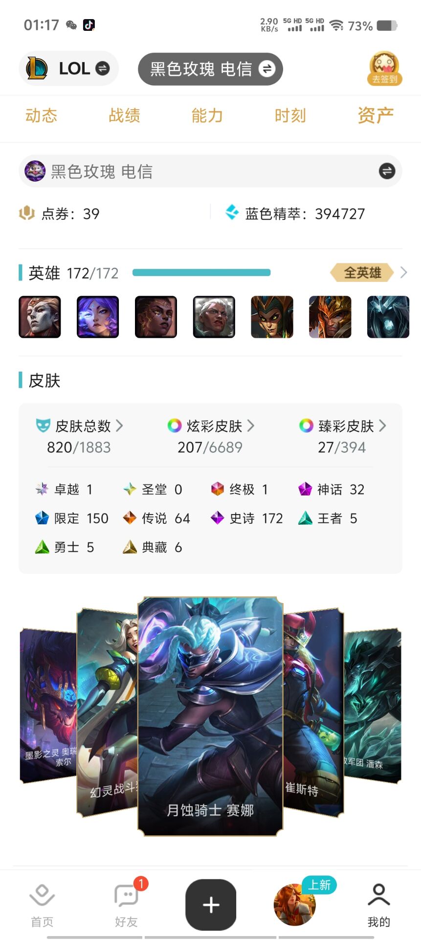 全英雄,800+皮肤、年限定全套、殿堂卡沙、龙瞎、至臻号、海克斯