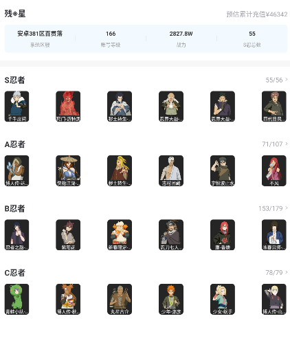★55S-71A-3000W战力★漂泊带土/须佐能乎止水/大筒木舍人/须佐卡卡西/忍战艾/忍战大野木/忍战带土/侠影兜/创立柱间-大蛇丸/漂泊小南/九喇嘛鸣人/永恒万花筒佐助/六代目水影长十郎/忍界大战小樱/大筒木金士/二代水影小胡子/卑留乎荣耀