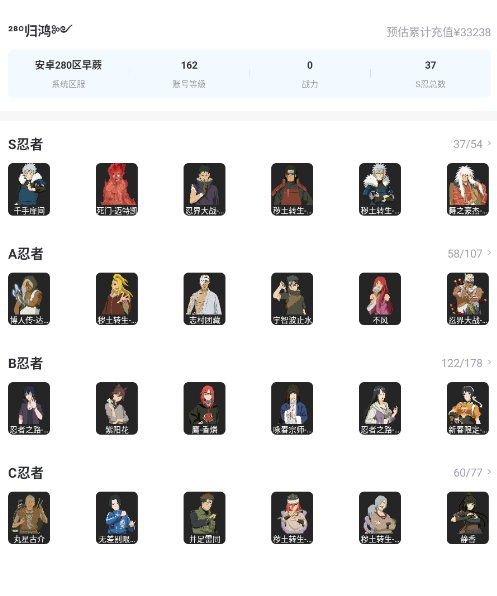 中浣熊GG190★37S-58A★2000万战斗力★侠影大野木-青春迈凯伦-旗木卡卡西-青年★九喇嘛鸣人★忍战艾-...