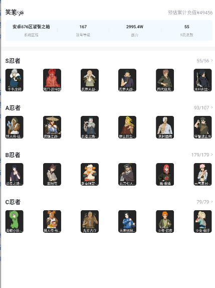 ★V15-55S★93A★3000万战斗力★九喇嘛鸣人★ 漂泊六道佩恩★ 忍战大野木★漂泊二代★无★死门凯★白面具★秽土波风水门★雷影★木叶英雄仙鸣★青水★忍战卡卡西★卑留呼★应有尽有荣耀