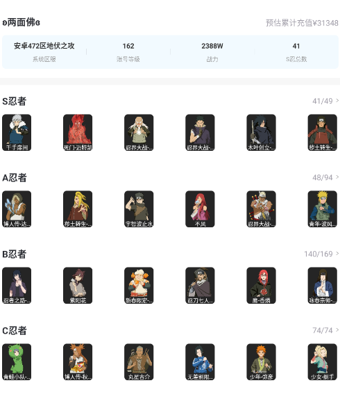 大浣熊MM305★47S★59A★2700 万战斗力/终章舍人*须佐卡卡须佐止水大筒木桃式★九喇嘛鸣人★ 忍战大野...