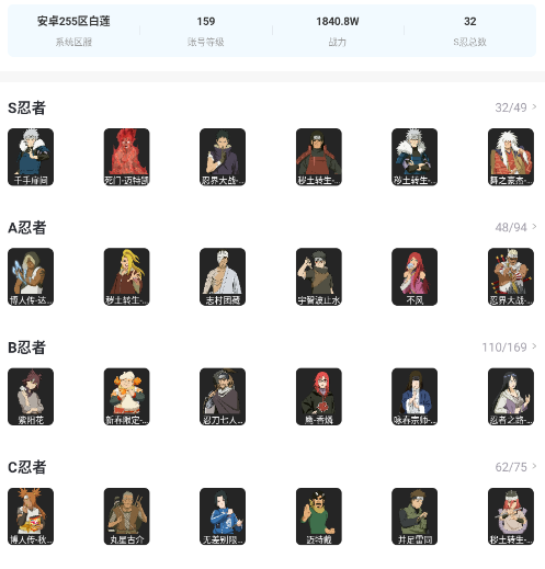 中浣熊YS363★39S★56A★2200万战斗力★终章舍人*须佐止水/终章雏田九喇嘛鸣人★ 三代雷影★ 忍战带土...