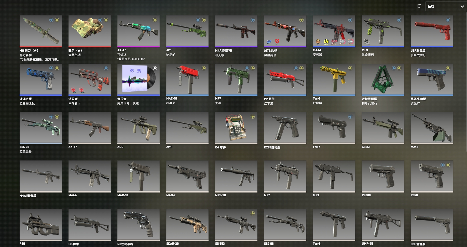 【完美】M9刺刀森林✦裹手森林✦AK可燃冰/AWP响尾蛇/A1夜无眠/A4变频器/MP9致命毒药/USP引擎故障灯...