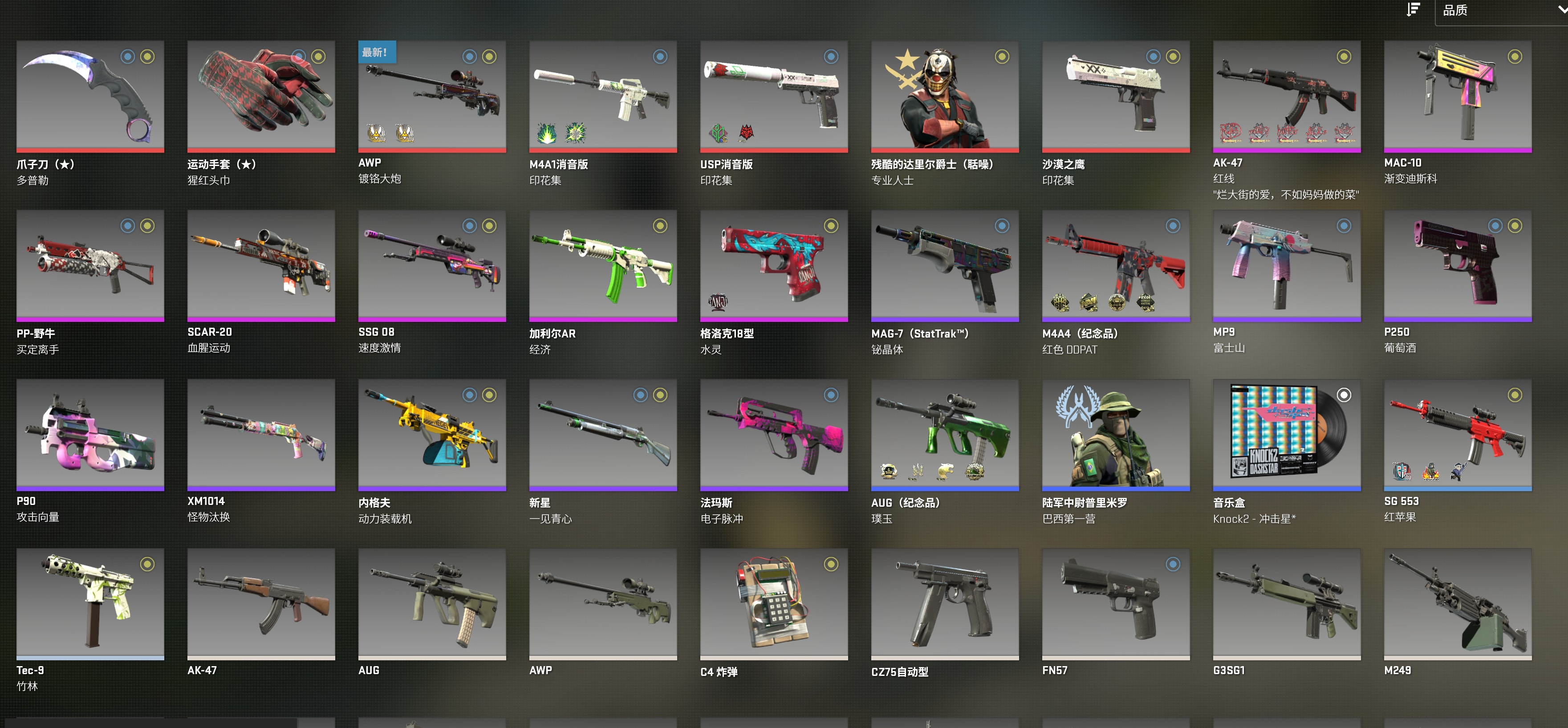 令牌看描述★完美绿5e★红宝石爪子刀★猩红手套★镀铬大炮awp★印花集套★AK红线★主战齐