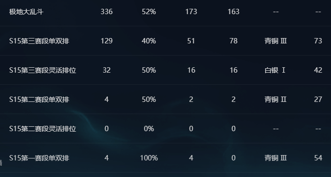 角色等级:460 角色名:喝着烈酒哼着歌 排位赛:允许 单双排段位:荣耀黄金I 灵活组排段位:华贵铂金IV 英雄数量:172 皮肤数量:771 分销起租时长:1 云顶段位:无段位 双人作战段位:无段位