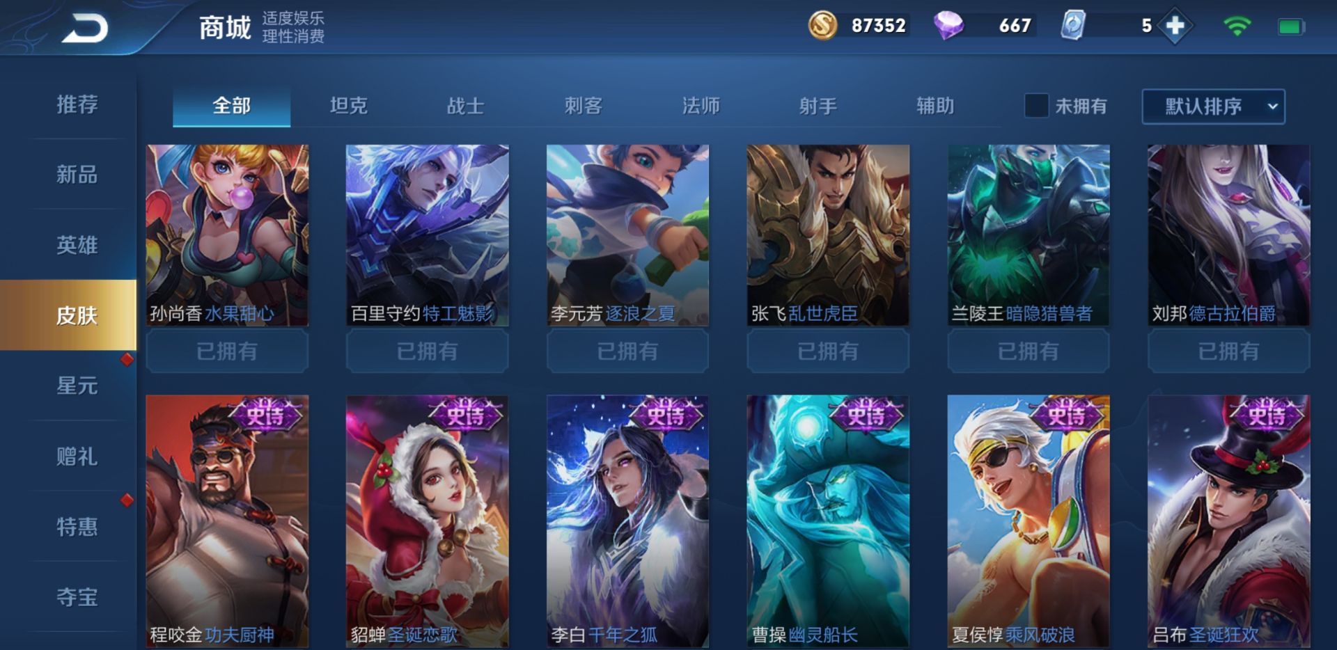 127英雄/165皮肤/全息碎影/冰峰战神/青龙志/游园惊梦/引擎之心/遇见飞天/青春决赛季/逐梦之光/梅西/梁祝...