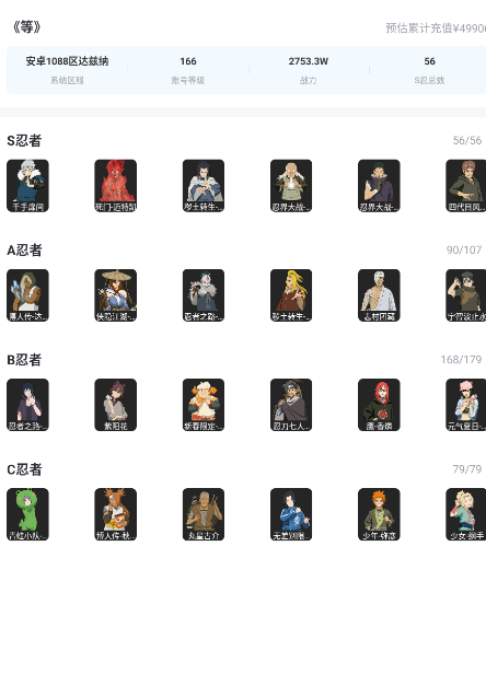 SS150★56S★90A★2800万战斗力★九喇嘛鸣人★ 漂泊六道佩恩★ 六尾鸣人★泳装黑土★天道 超★须佐止水★白面具★