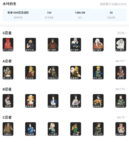 小浣熊GG122★25S★48A★1400万战斗力★九喇嘛鸣人★ 永恒万花筒佐助★ 忍战带土雷影★秽土初代二代三代...