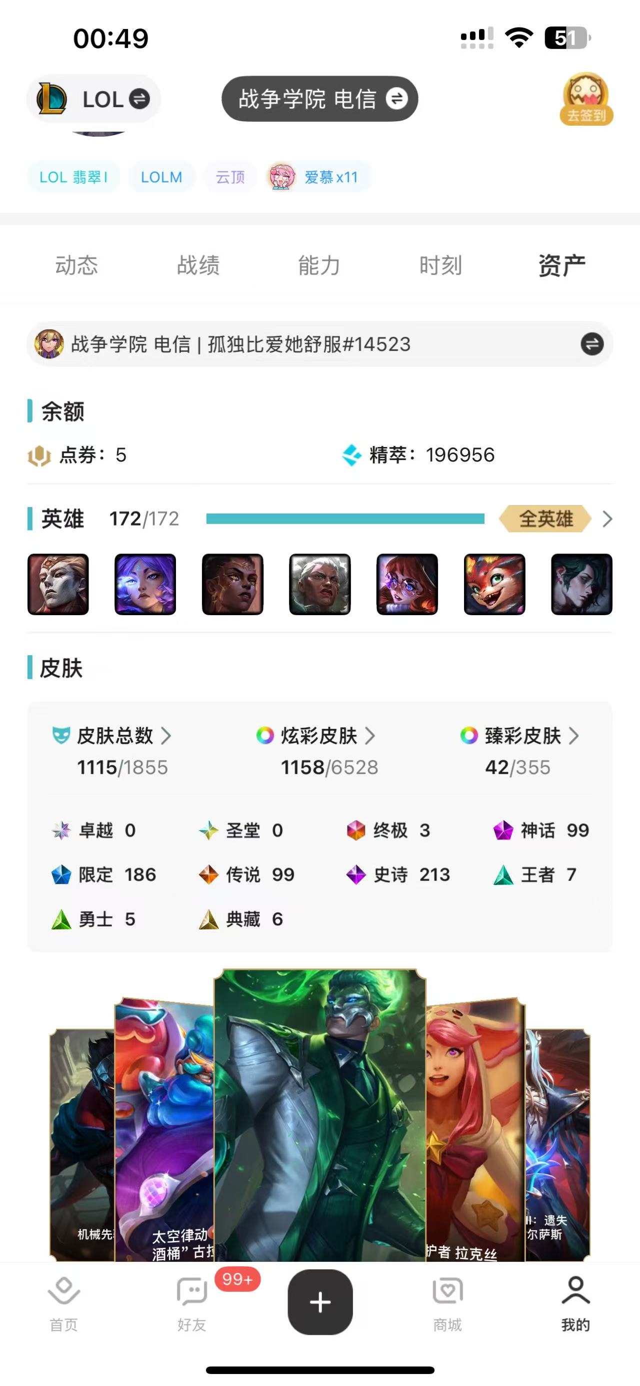 角色等级:1821 角色名:孤独比爱她舒服 排位赛:允许 单双排段位:流光翡翠III 灵活组排段位:流光翡翠I 英雄数量:172 皮肤数量:1115 分销起租时长:1 云顶段位:无段位 双人作战段位:无段位