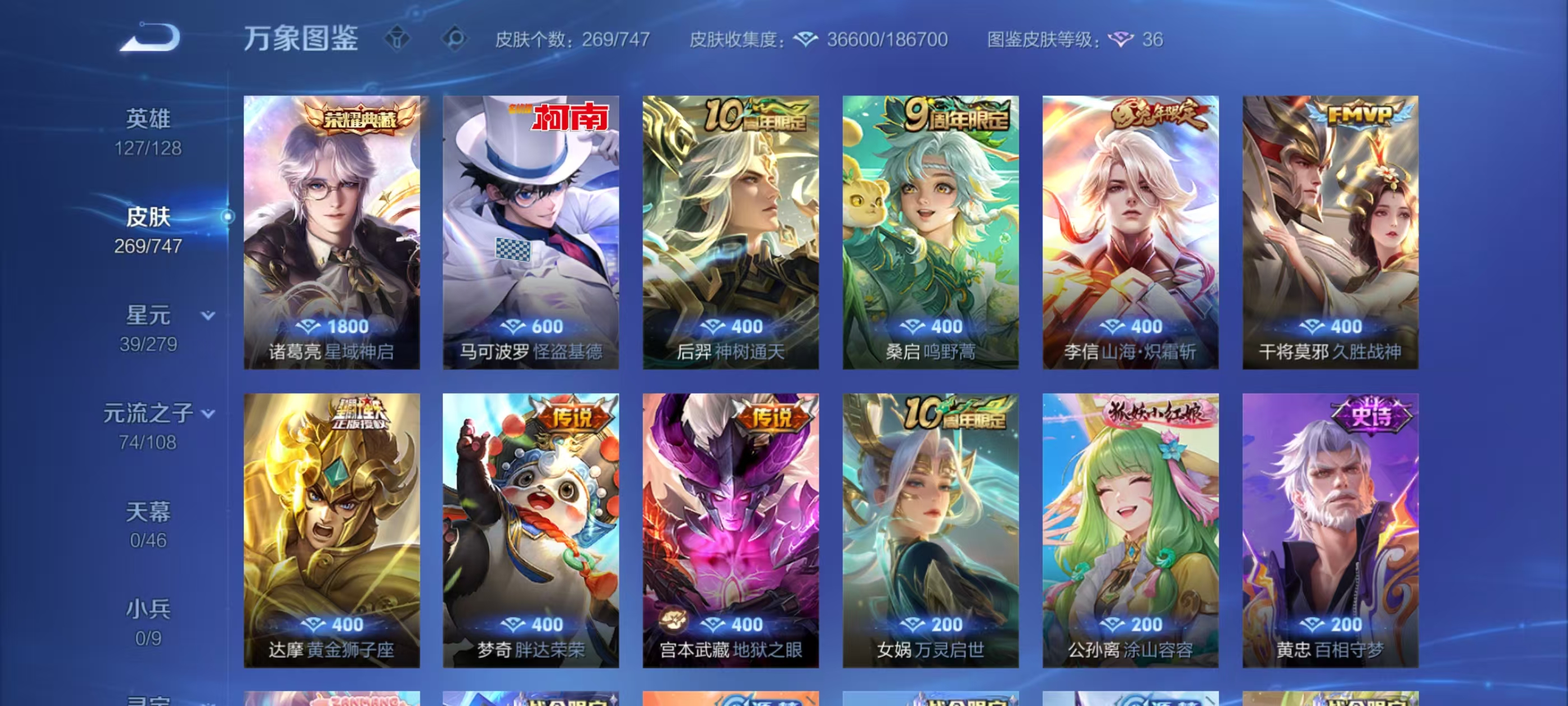 DF517☆V7☆269优质皮肤☆星域神启☆★怪盗基德★至尊宝★孙行者★久胜战神★炽霜斩★云间偶戏★暗影游猎★黄金狮子座★幽冥之眼★等等