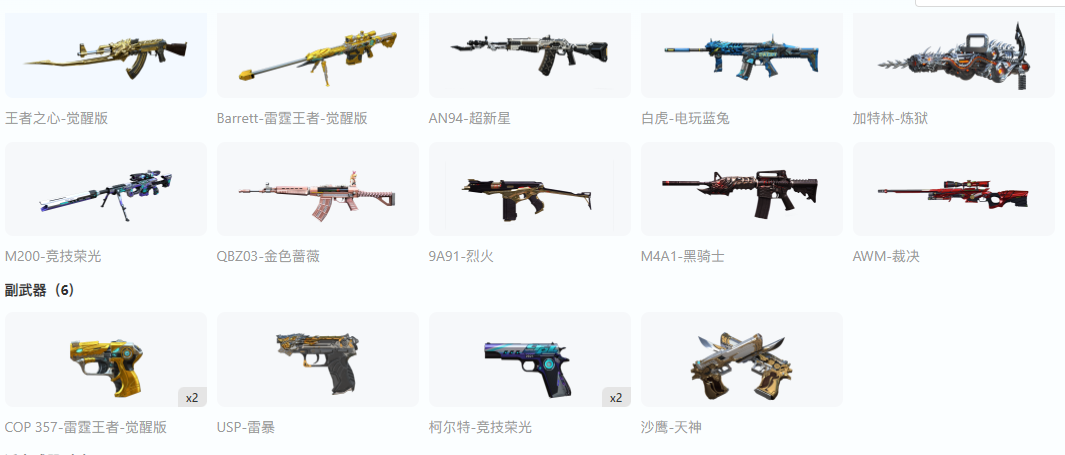 XX123@45V/可排位/M200-竞技荣光套装/电玩蓝兔/AWM-裁决/王者之心/雷霆王者套装/烈火/王者-瞳...