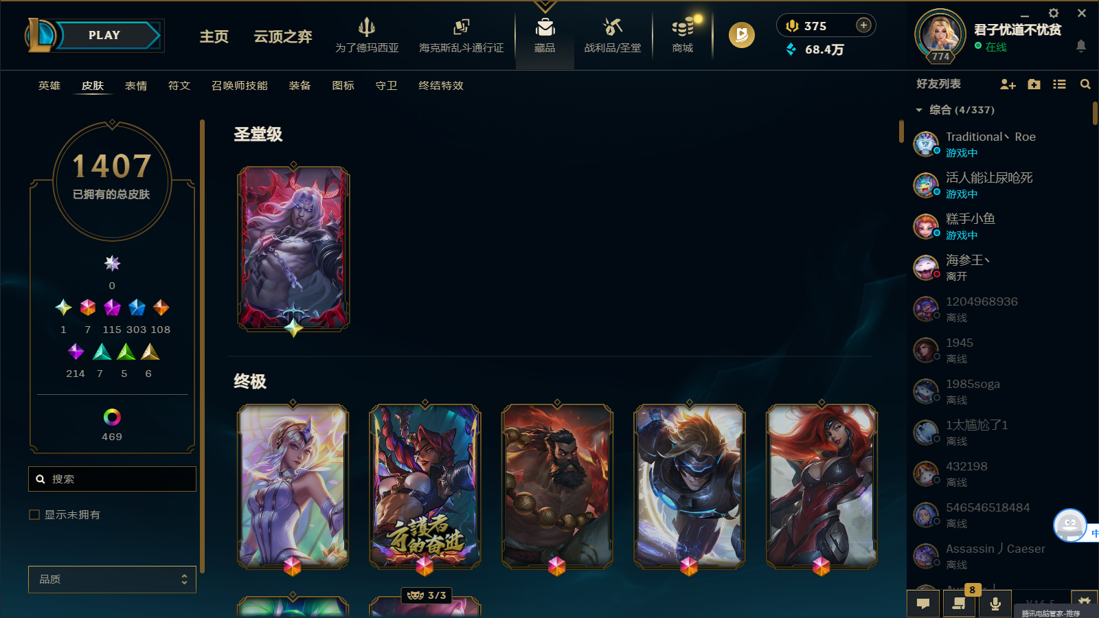全英雄★佛爷圣堂★各种至臻★各种海克斯★神话★各种限定★小小英雄