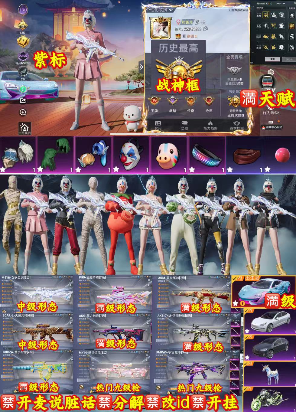 1号,老101满级车,s1全套,木乃伊,女娲,盖世,天蓬,满级aug