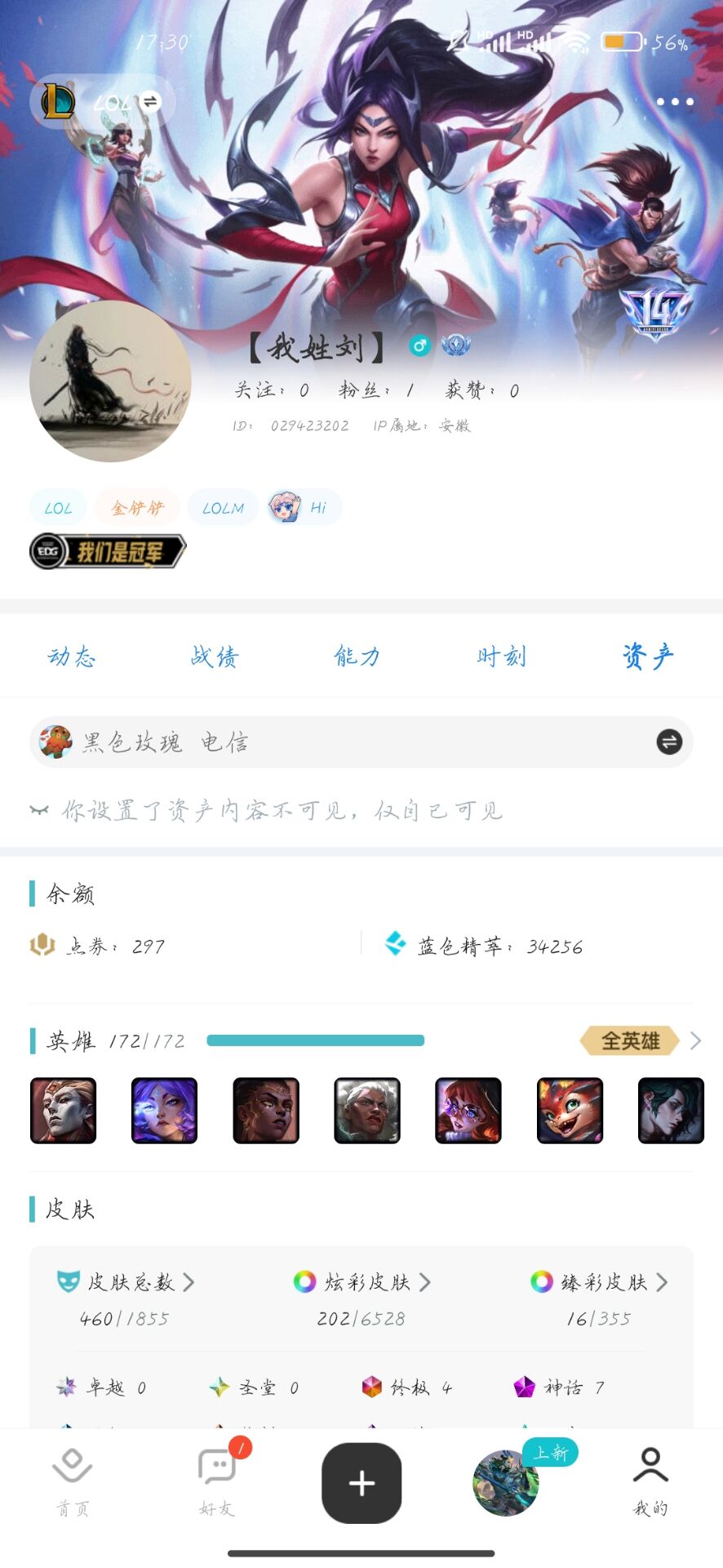 角色等级:421 角色名:中国人民万岁 排位赛:允许 单双排段位:- 灵活组排段位:- 英雄数量:172 皮肤数量:464 分销起租时长:1 云顶段位:无段位 双人作战段位:无段位