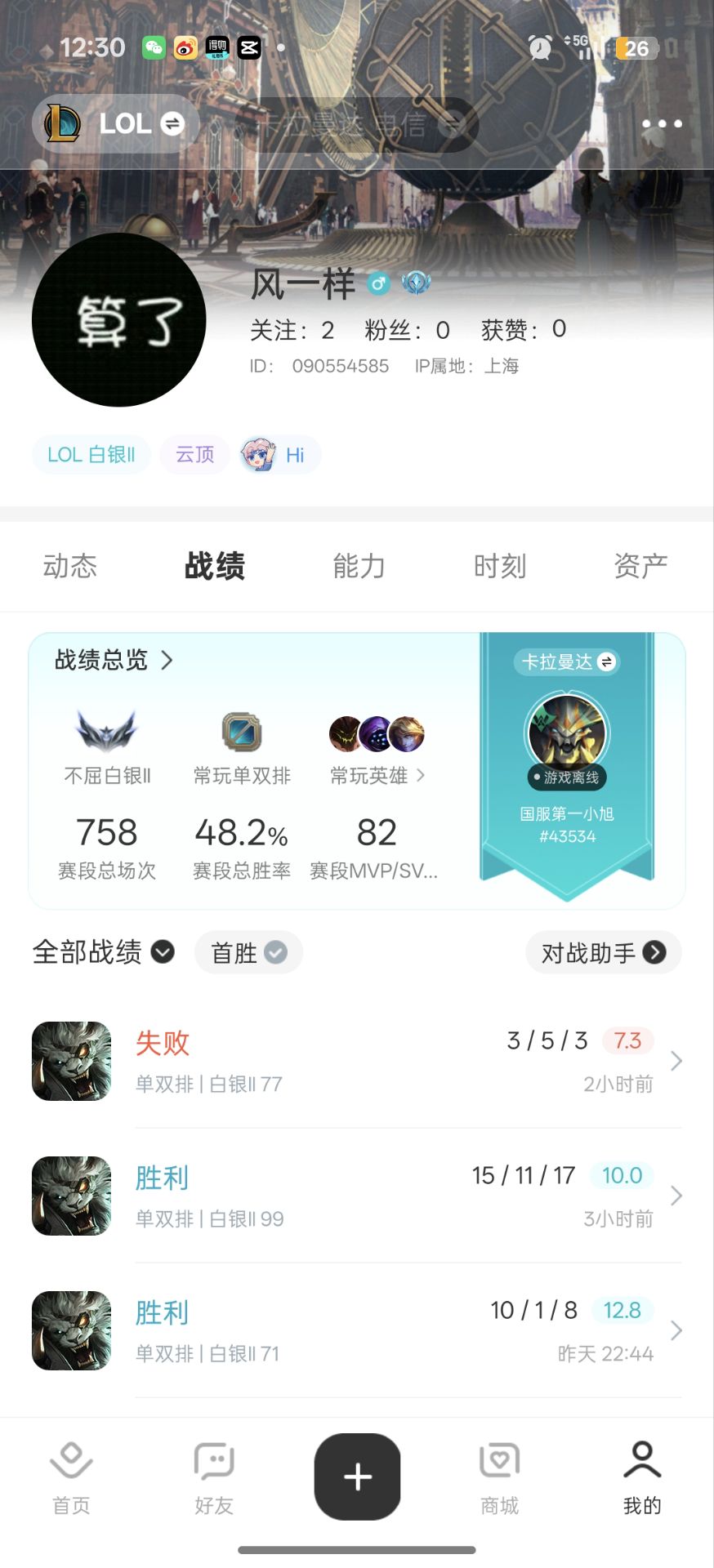 角色等级:336 角色名:国服第一小旭 排位赛:允许 单双排段位:荣耀黄金IV 灵活组排段位:- 英雄数量:172 皮肤数量:118 分销起租时长:1 云顶段位:无段位 双人作战段位:无段位