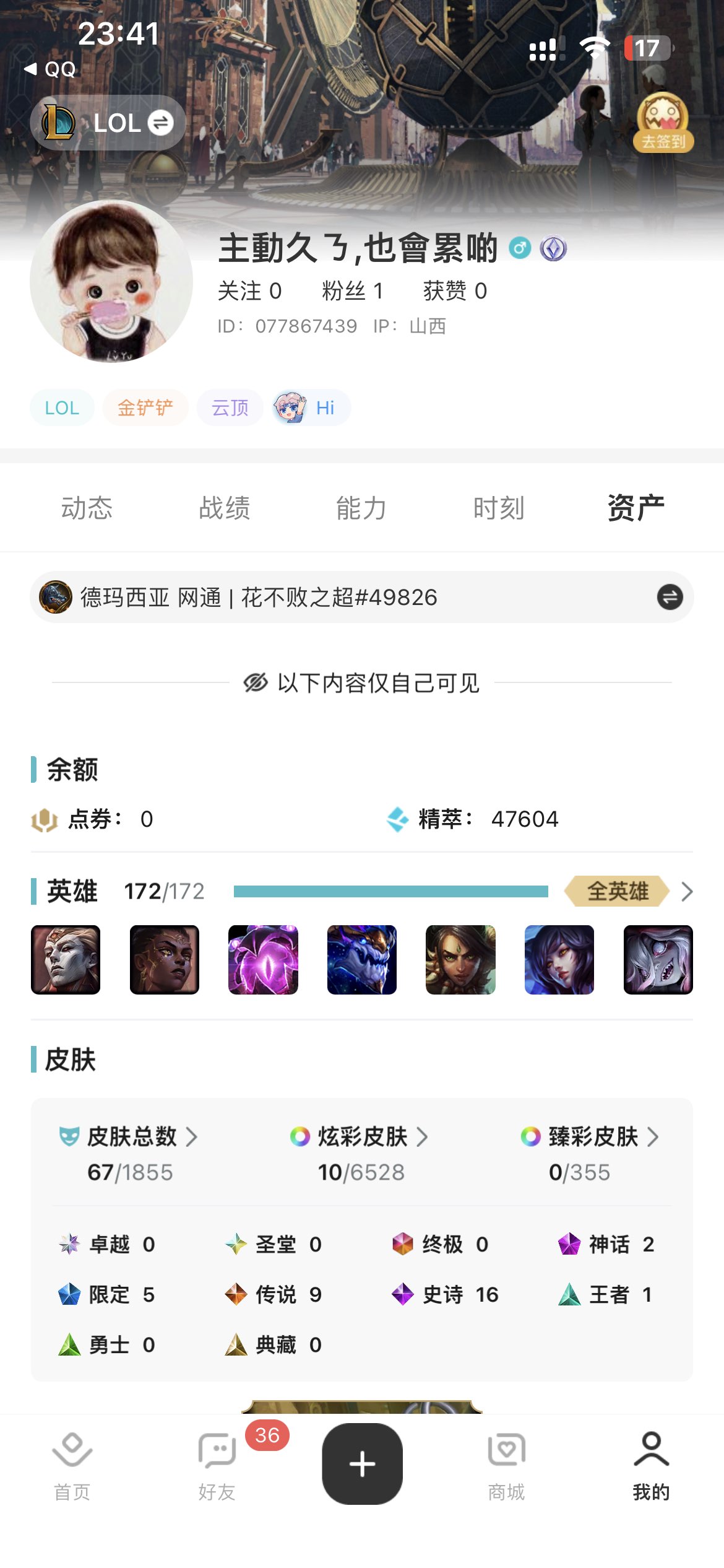角色等级:276 角色名:花不败之超 排位赛:允许 单双排段位:- 灵活组排段位:- 英雄数量:172 皮肤数量:67 分销起租时长:1 云顶段位:无段位 双人作战段位:无段位
