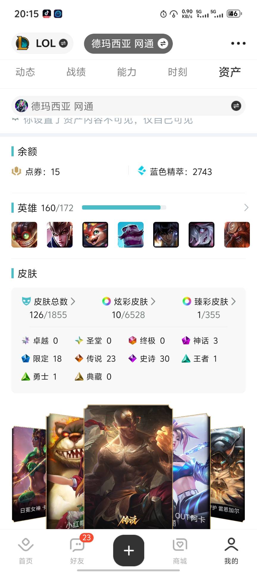 角色等级:369 角色名:愿以AD护你丶 排位赛:允许 单双排段位:荣耀黄金II 灵活组排段位:荣耀黄金I 英雄数量:161 皮肤数量:126 分销起租时长:1 云顶段位:无段位 双人作战段位:无段位