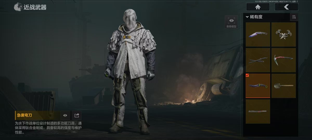 【角色皮肤】:硝云余响作战服,苍白隐者伪装服,钢铁壁垒作战服,机车朋克战衣,绅士西服,台风Ⅲ竞技运动服,台风IV竞技运动服;【装备涂装】:散花海Ⅱ装备组合包,散花海装备组合包,钢铁壁垒涂装组合包,机车朋克装备涂装组合;【近战武器】:瀚星斩铁,寒牙手刺,明刀绣春,冬日冰镐,急袭弯刀,工兵铲,来战开山刀;【手套】:玉鸾挂枝手套,战术甲胄防护手套;【突击步枪】:竞技FAL,冬夜AK12,缟兵玄墨AKM,来战AKM,坚守AKM,和平之手FAL,炎夏浪花H416,自喷网格H416,北国内卫MDR,雪原凌锋AK74N,来战AK74N,骑士之剑AKS74U,雪山之王F2000,竞技AR57,涂绘猎人AR57,骑士之剑ACE31,湖冰倒影ACE31,**小子ACE31,*后防线AEK,北国内卫AN94,百锻寒芒T951,百锻寒芒T03,玄戈梨花T03,林地数码T03,07式林地迷彩QBZ191;【冲锋枪】:湖冰倒影MP5,掌中盾MP5,龙威MP5,快乐游戏MPX,雪山之王MPX,灰鼠幻歌P90,禁止访问UMP45;【射手步枪】:骑士之剑VSS,冰河碎影MK14,雪原凌锋SVDS,玄戈梨花VSS,白狼连