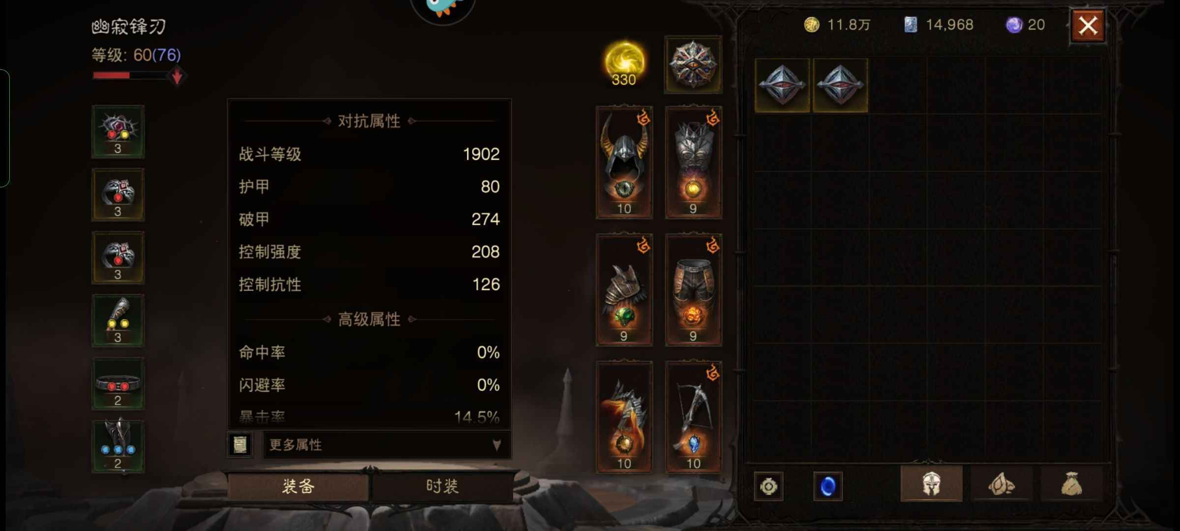 暗黑破坏神不朽九游版本,战斗等级评分1900,巅峰76,炫酷时装