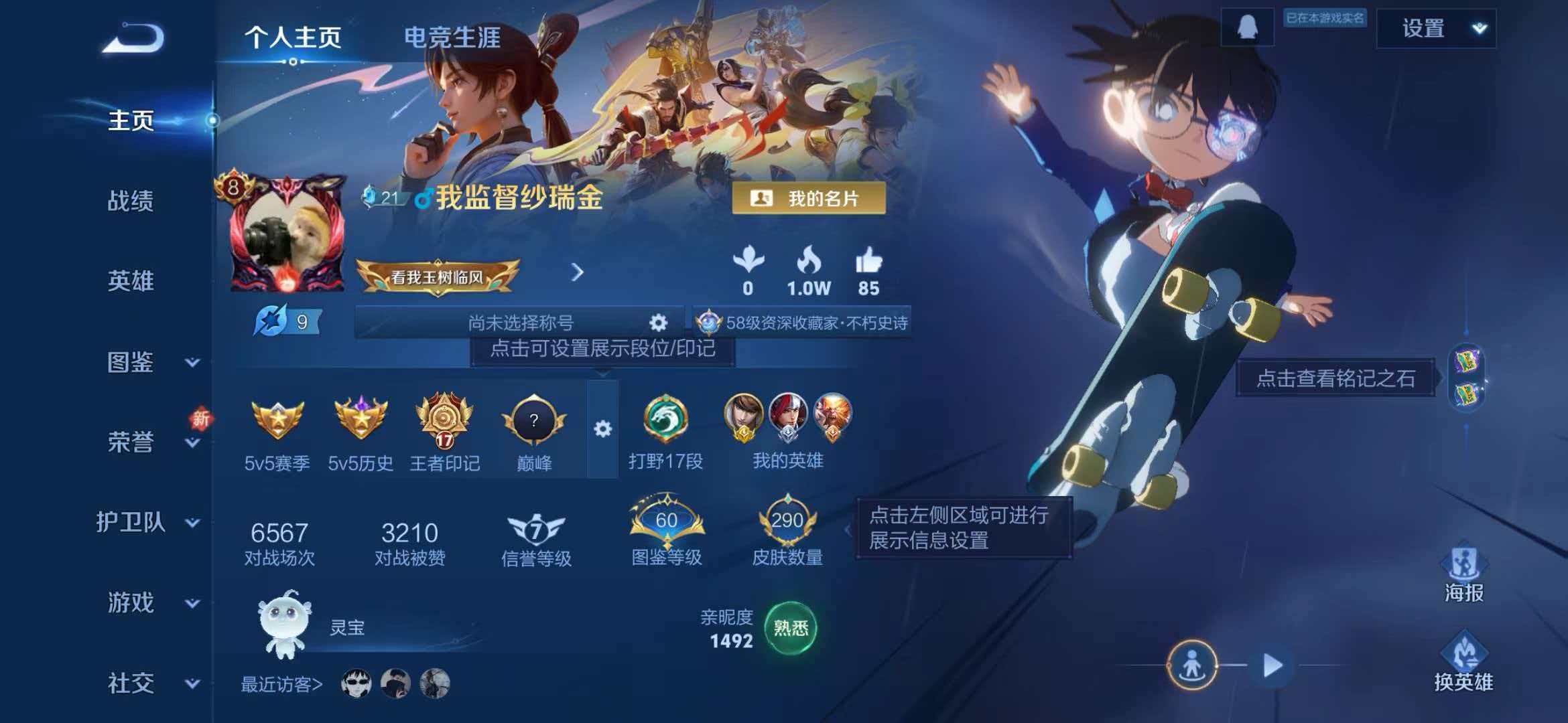 A311,V8,290皮肤,鸣剑·曳影、凤求凰、诗剑行、诗仙醉月,:江户川柯南、寅虎·瑞焰、电玩小子,深海之息、山...