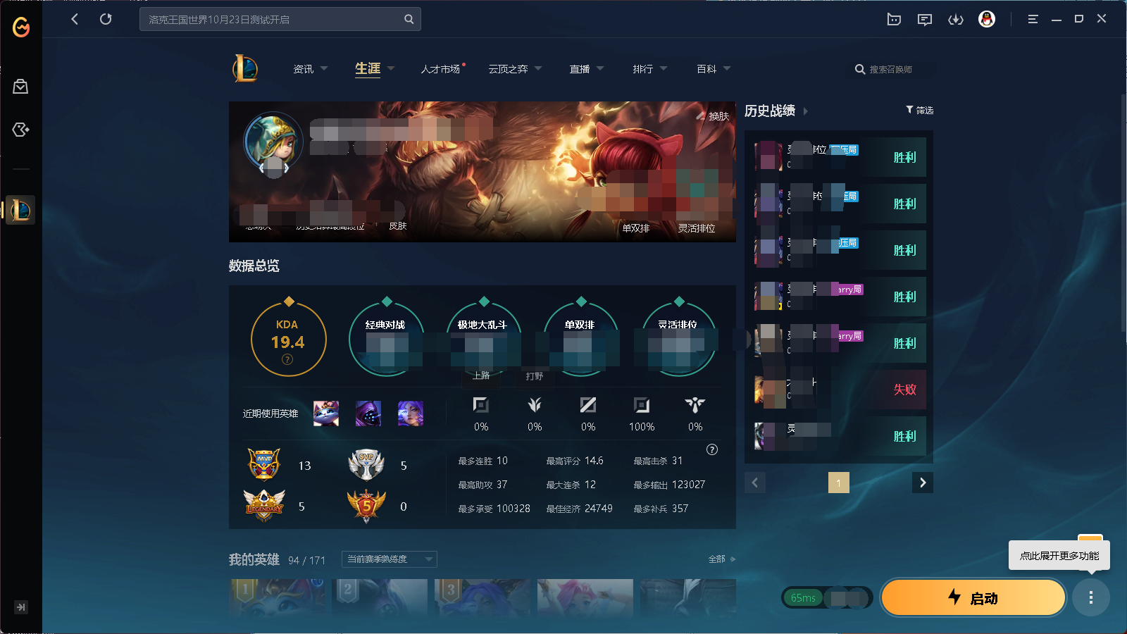 角色等级:109 角色名:九八野马人 排位赛:允许 单双排段位:英勇黄铜III 灵活组排段位:- 英雄数量:76 皮肤数量:5 云顶段位:无段位 分销起租时长:1
