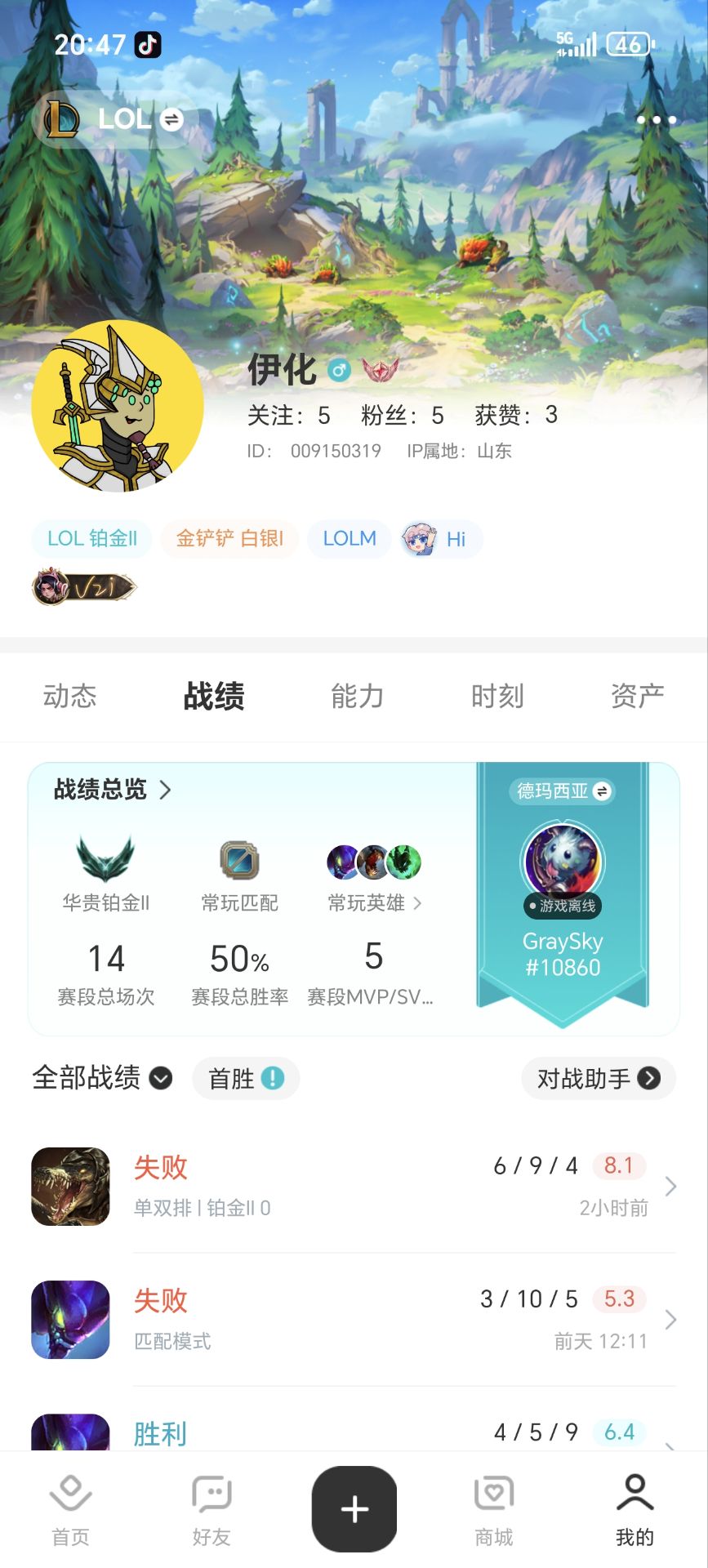 单双排段位:华贵铂金II