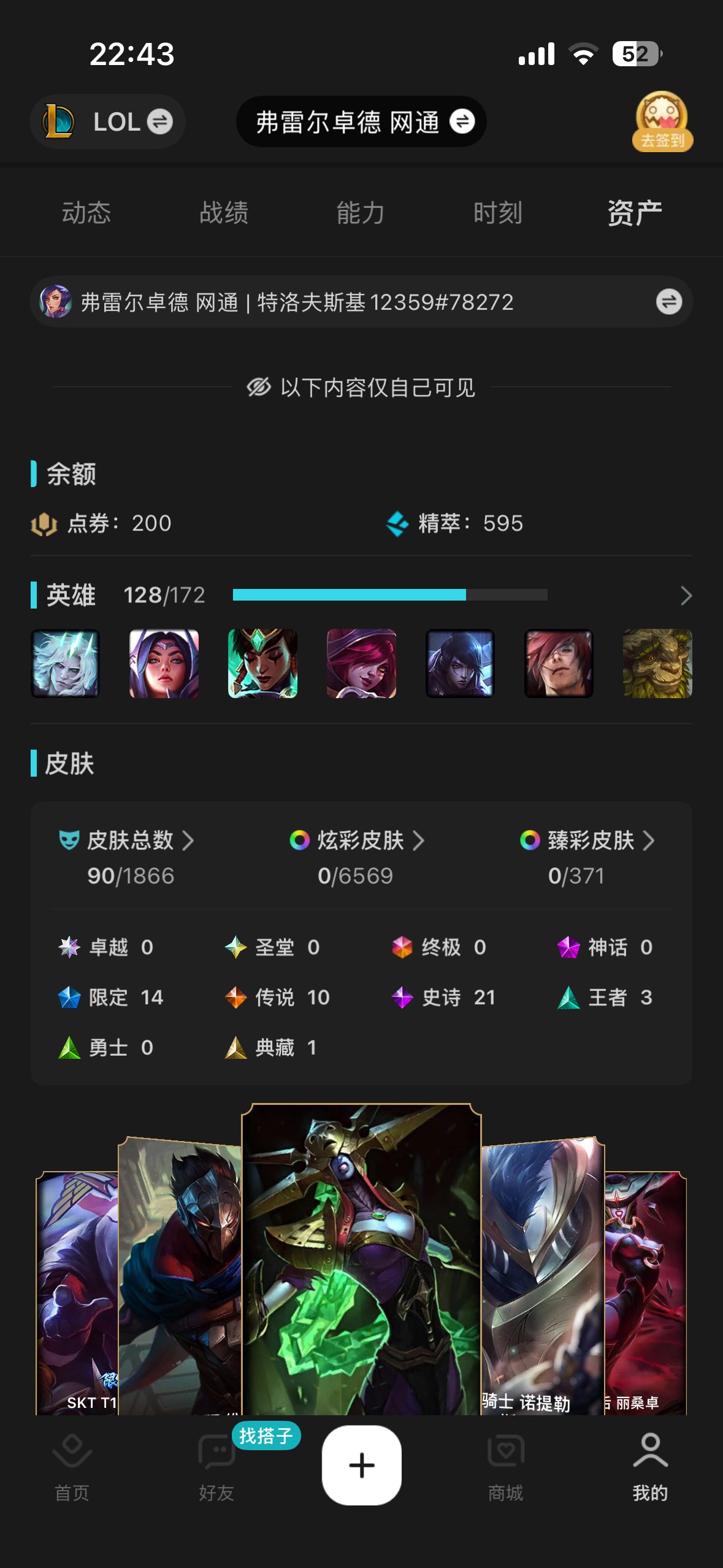 角色等级:33 角色名:特洛夫斯基12359 排位赛:允许 单双排段位:- 灵活组排段位:- 英雄数量:129 皮肤数量:90 分销起租时长:1 云顶段位:无段位 双人作战段位:无段位