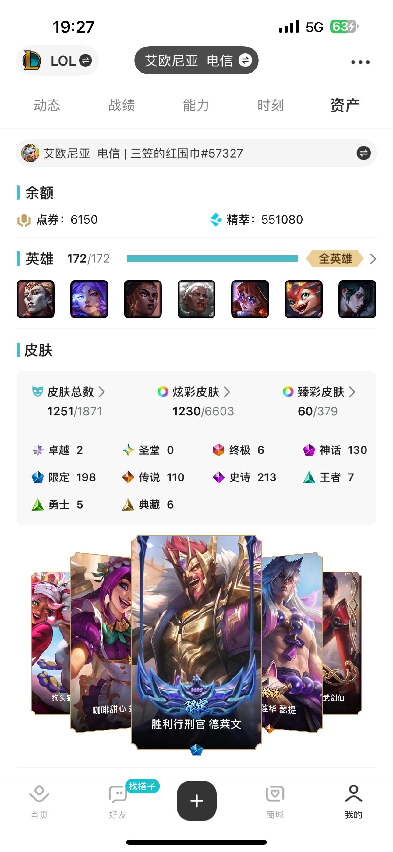 角色等级:1402 角色名:三笠的红围巾 排位赛:允许 单双排段位:- 灵活组排段位:璀璨钻石III 英雄数量:172 皮肤数量:1257 分销起租时长:1 云顶段位:无段位 双人作战段位:不屈白银IV