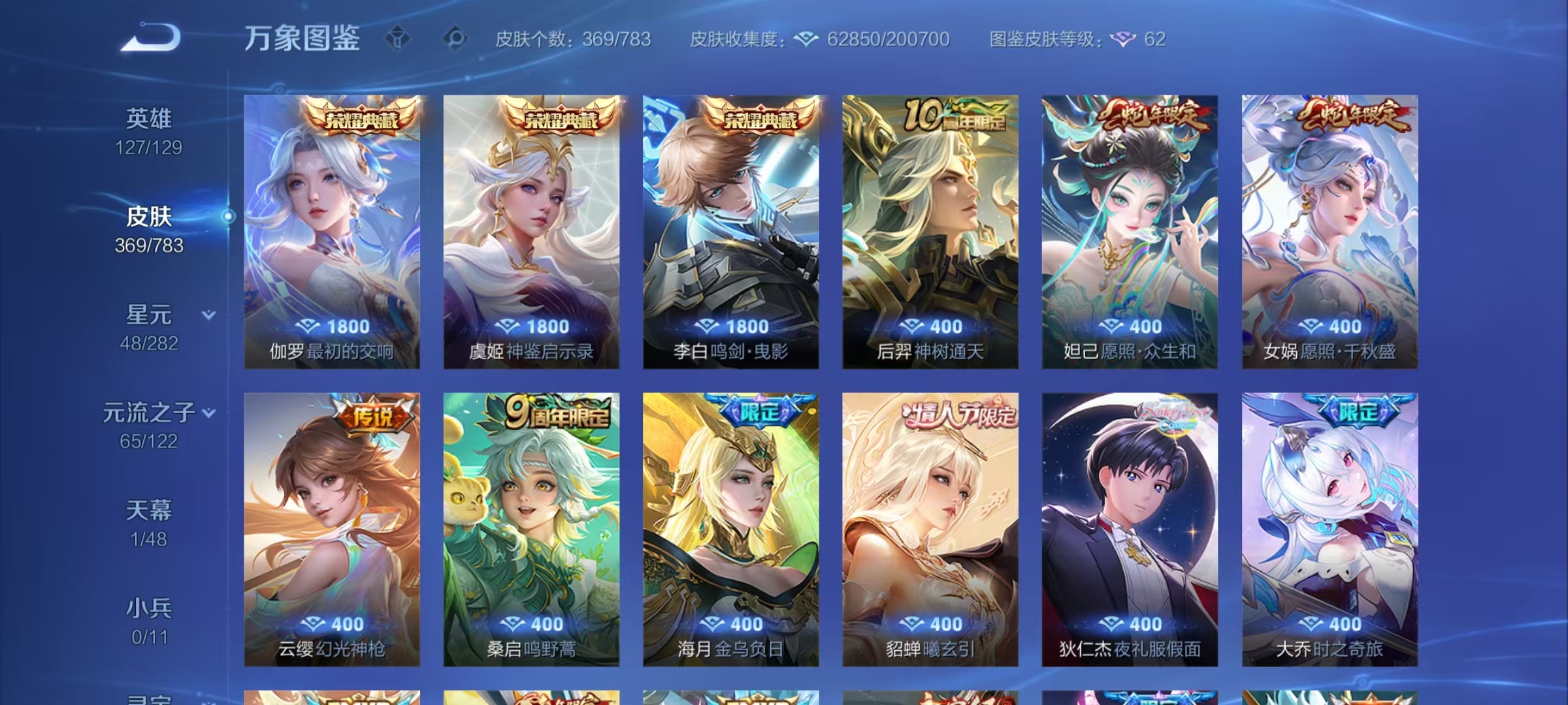 ZX301☆369优质皮肤☆最初的交响☆神鉴启示录☆名剑.曳影☆鸣野篙☆启明星使☆云霓雀翎☆久盛战神☆云鹰飞将☆时...