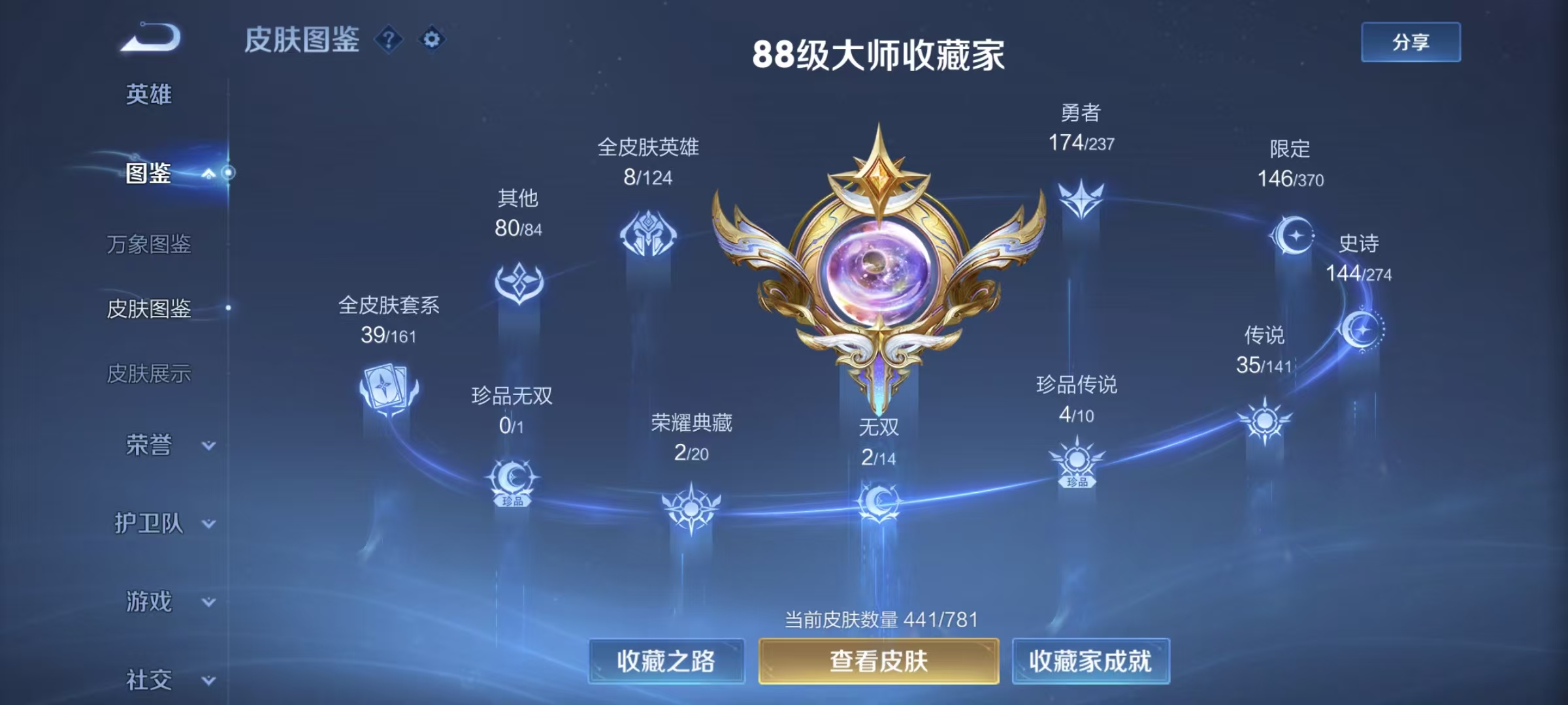 L70,V9,441皮肤,孙悟空无相 甄姬雪镜奇遇 小乔天鹅之梦 虞姬神鉴启示录 伽罗沧流箭 安琪拉库洛米之心 瑶大耳狗之梦 嫦娥器灵.落星盏 女娲补天 干将莫邪画中仙
