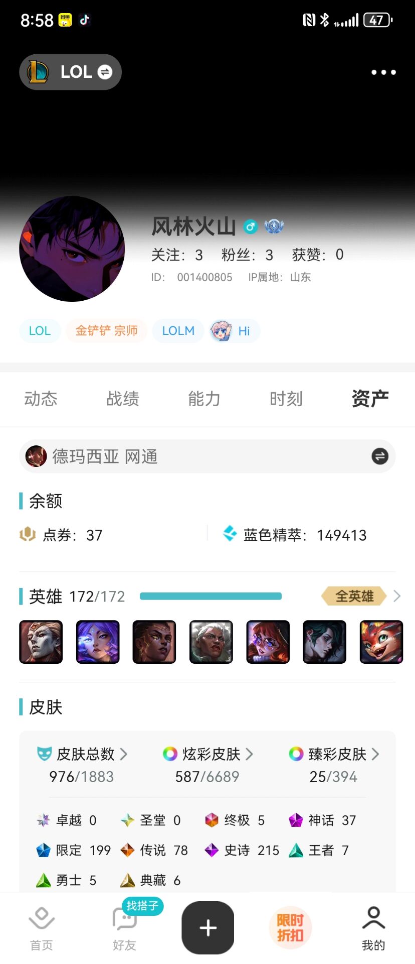 角色等级:1041 角色名:在劫难逃 排位赛:允许 单双排段位:- 灵活组排段位:- 英雄数量:172 皮肤数量:977 分销起租时长:1 云顶段位:无段位 双人作战段位:无段位