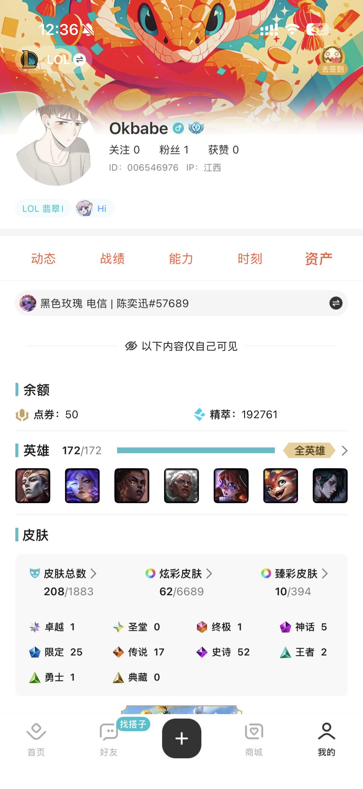 角色等级:354 角色名:陈奕迅 排位赛:允许 单双排段位:华贵铂金IV 灵活组排段位:流光翡翠I 英雄数量:172 皮肤数量:214 分销起租时长:1 云顶段位:无段位 双人作战段位:无段位