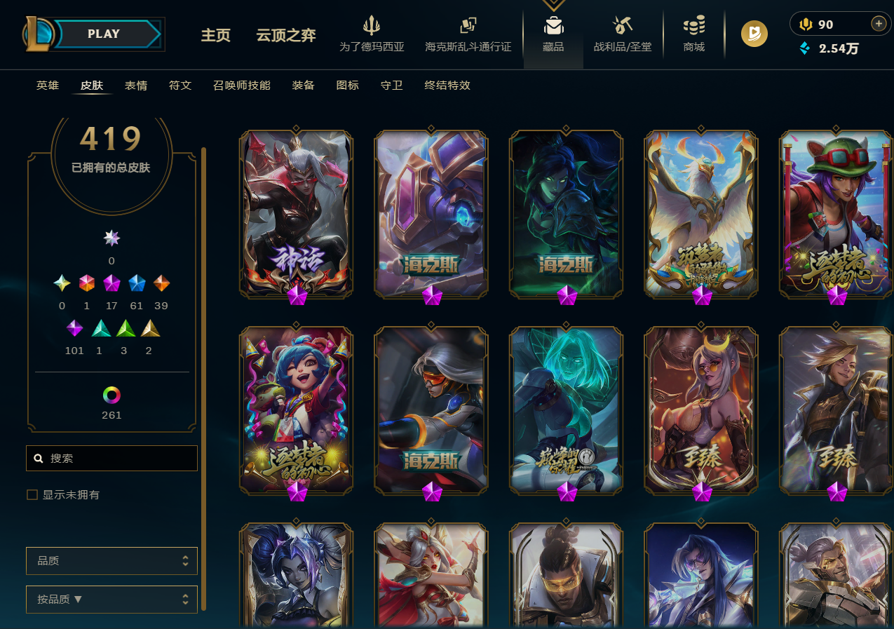 艾欧尼亚/可排位/四百皮肤/至臻皮肤/翡翠段位