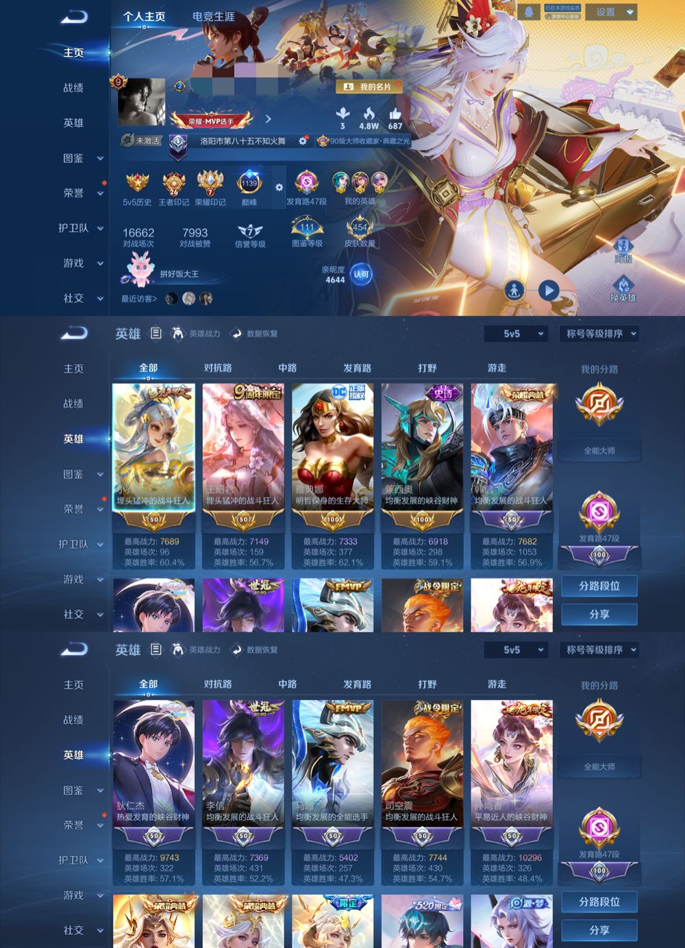 v9发育47段 历史荣耀 有魔方4省标小乔昭君22市标万战香 454皮4水2无双(舞白)44传多热门限定皮 全皮玄...