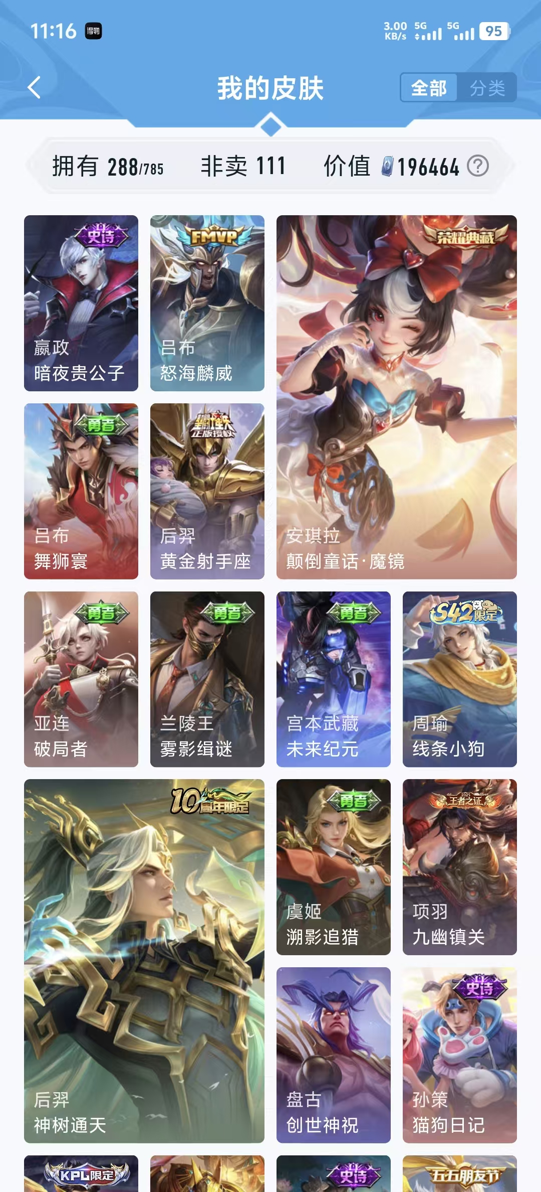 XX54@288皮肤/QQ安卓/颠倒童话·魔镜/武则天/齐天大圣/山海·碧波行/愿照·干秋盛/逐霄之志/巫礼祀神/逆浪荇歌/地狱火/器灵·浮梦炉/敬我三分/大圣娶亲/魅语/苍穹之光/久胜战神/永昼/电玩·爆裂旋风/冠军飞将/无限星赏官/万灵启世/鹤鸣心笺/黄金射手座/怒海麟威/等等