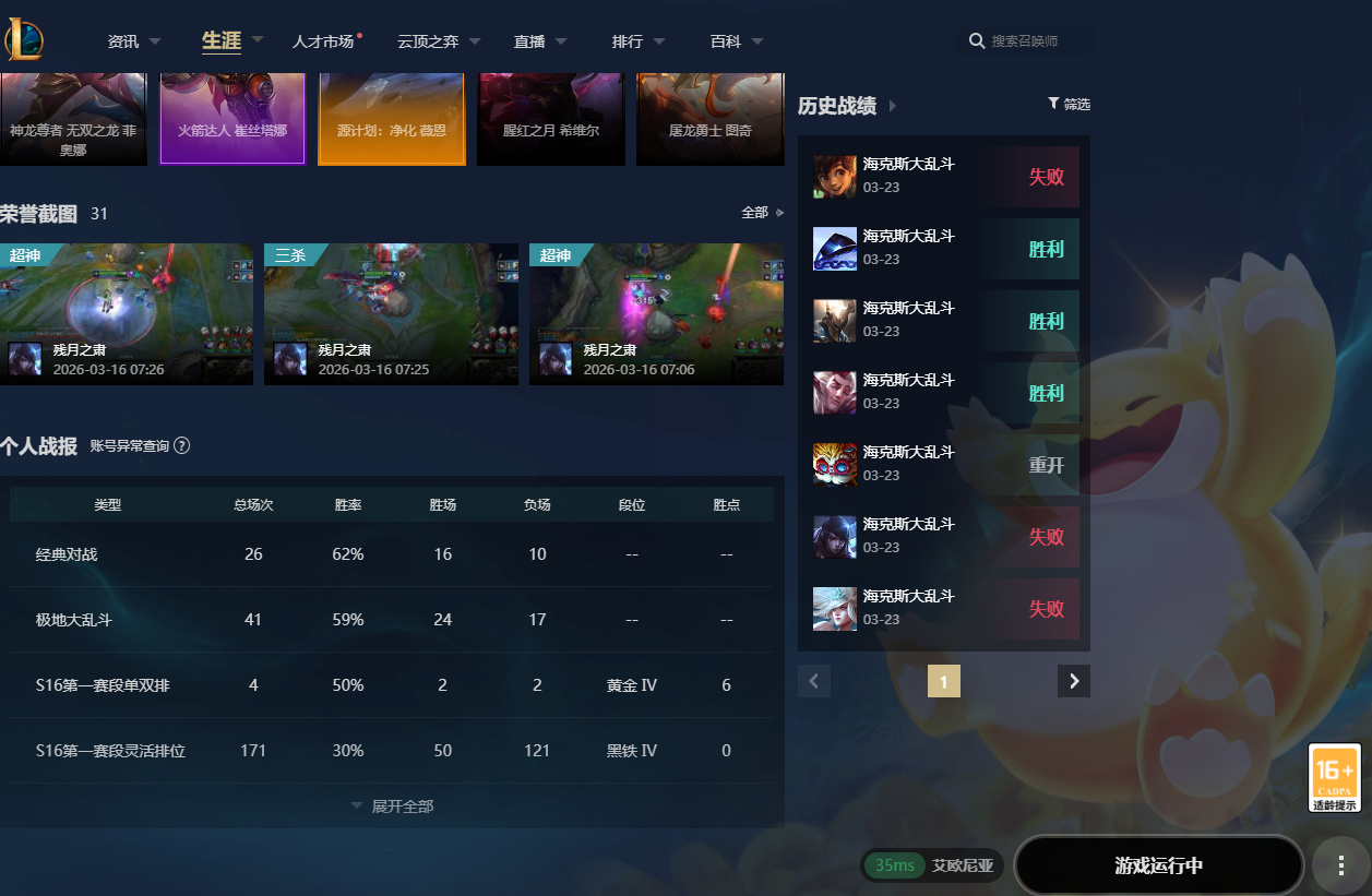艾欧尼亚jinx63黑/铁灵活负胜率AD辅助英雄号/海斗负胜率