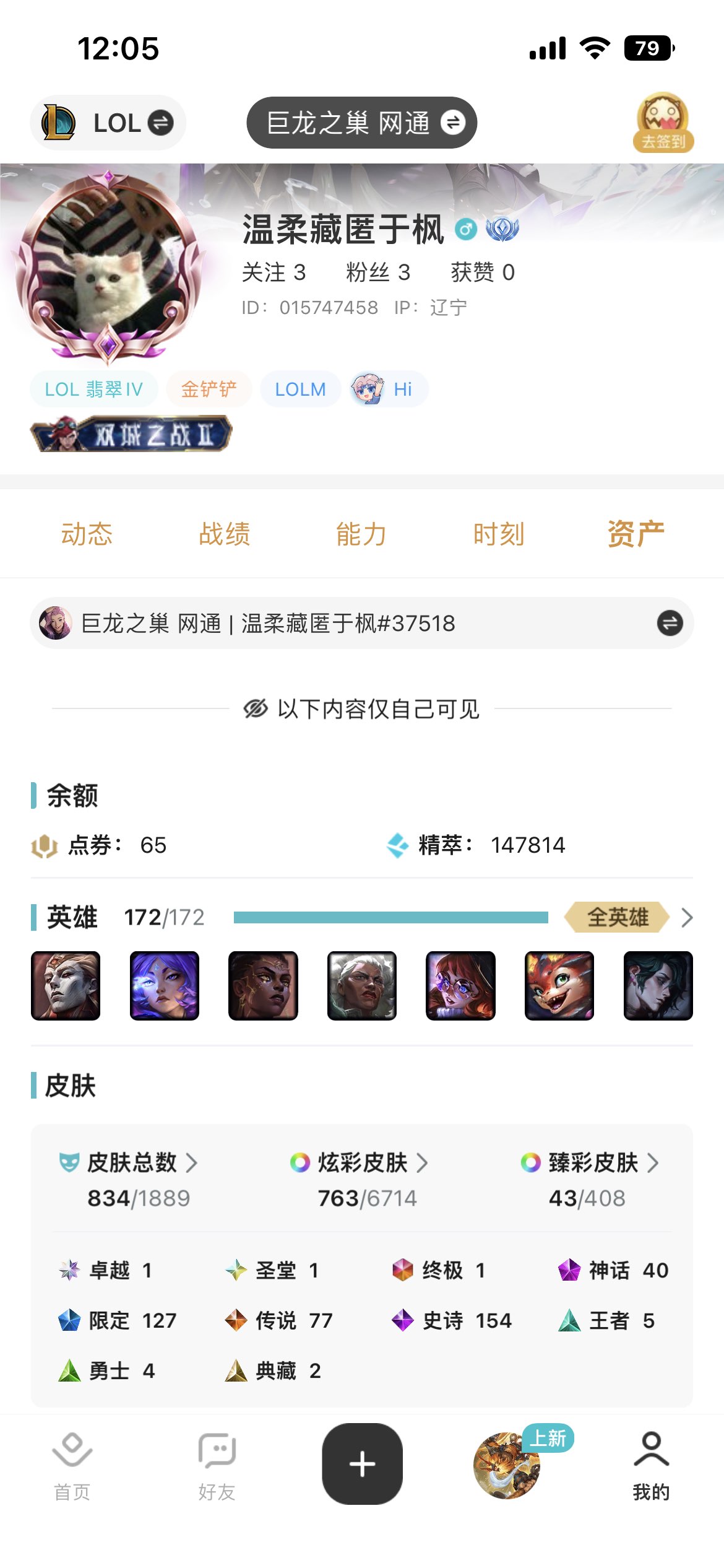 角色等级:1037 角色名:温柔藏匿于枫 排位赛:允许 单双排段位:流光翡翠III 灵活组排段位:流光翡翠II 英雄数量:172 皮肤数量:835 分销起租时长:1 云顶段位:无段位 双人作战段位:无段位
