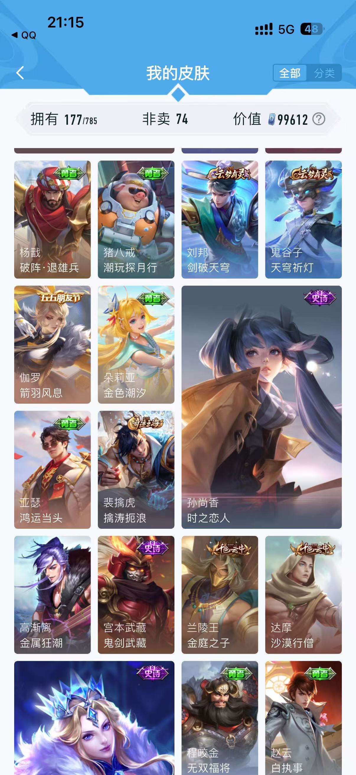 SS307--贵族7-177皮肤电玩小子 御风骁将 白虎志 超时空战士 地狱火 至尊宝 武陵仙君 云鹰飞将