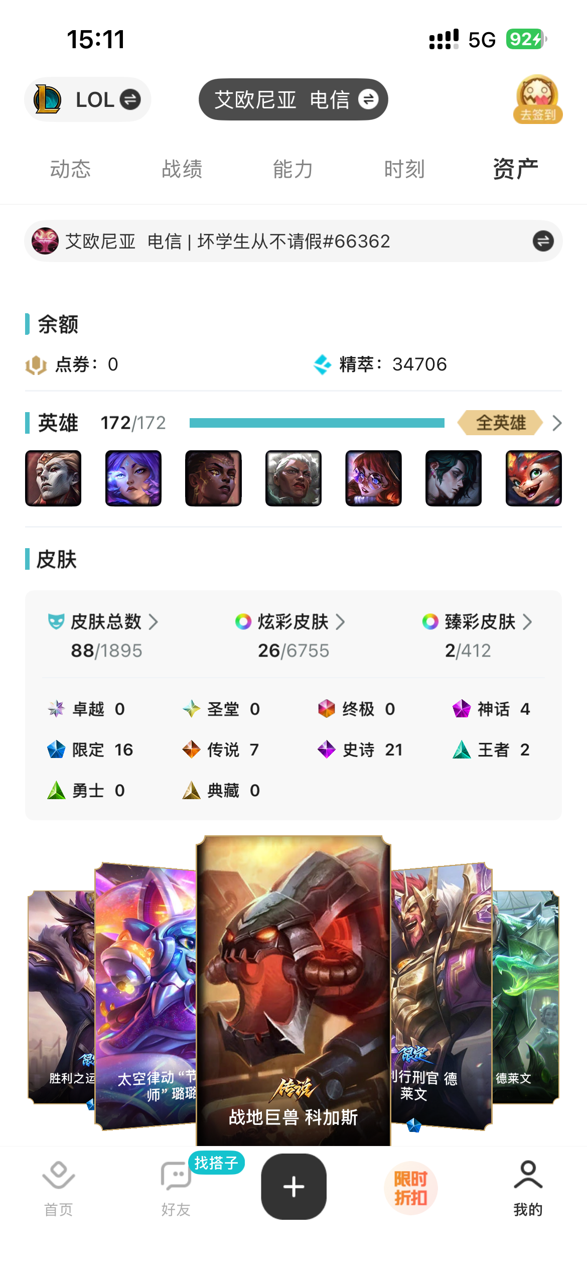 角色等级:413 角色名:坏学生从不请假 排位赛:允许 单双排段位:荣耀黄金IV 灵活组排段位:- 英雄数量:172 皮肤数量:88 分销起租时长:1 云顶段位:无段位 双人作战段位:无段位