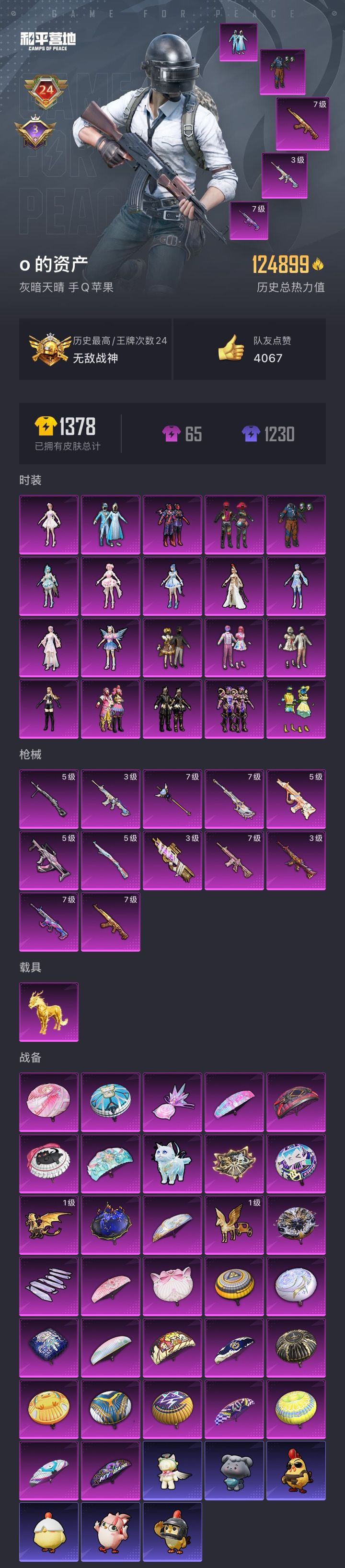 《2》28(到时不下线)20粉装12粉枪1载具乔克雪国甜心巧克力金鞋都市赤蝎7级AK甜心7级M416️恋7级scar机甲3级M416灵猫3级沙丘P90等装备。本店所有账号均已公安备案违规报警处理!