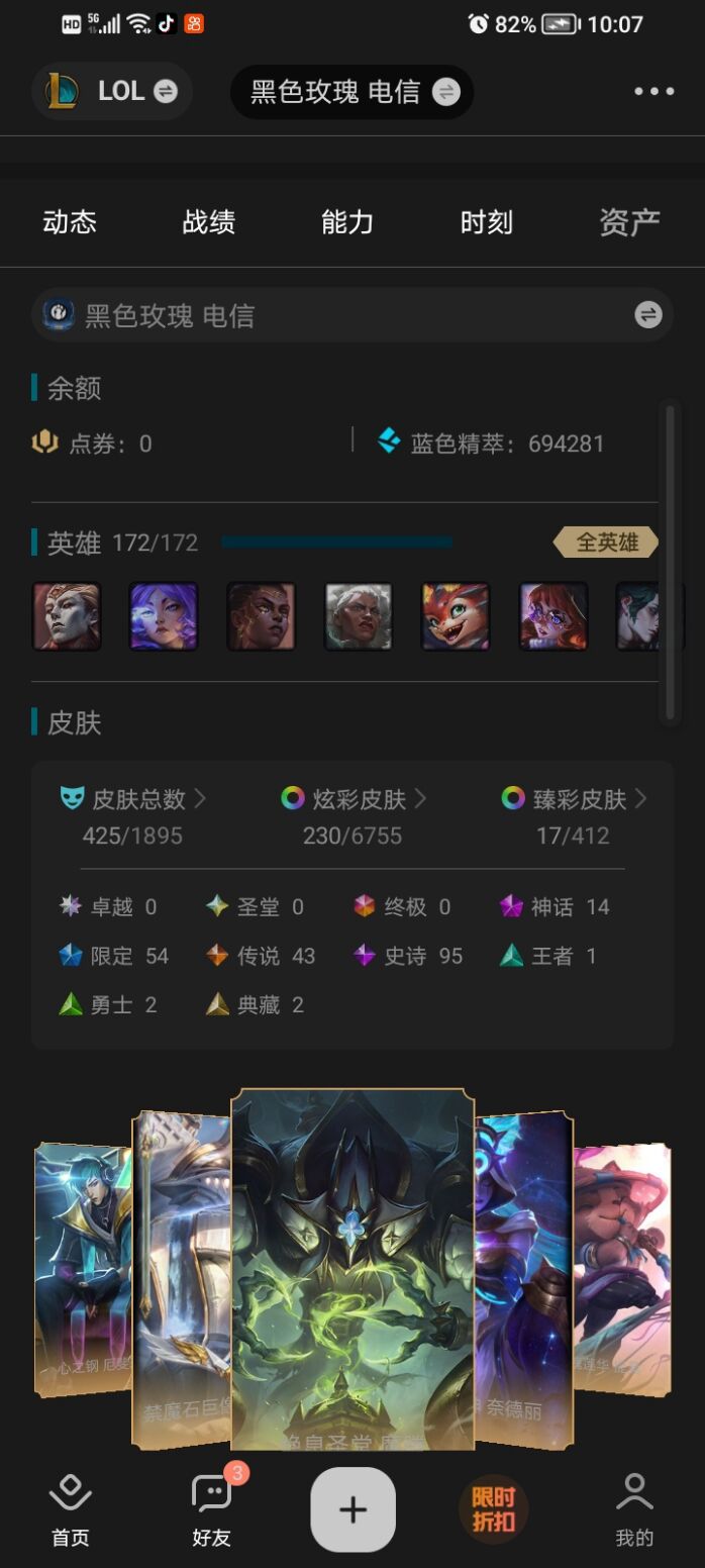 角色等级:1535 角色名:王力宏 排位赛:允许 单双排段位:华贵铂金IV 灵活组排段位:华贵铂金IV 英雄数量:172 皮肤数量:425 分销起租时长:1 云顶段位:无段位 双人作战段位:无段位