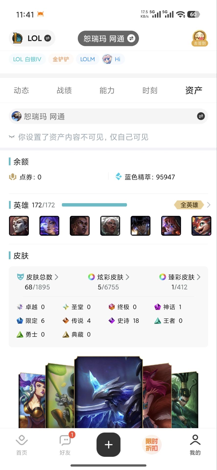角色等级:160 角色名:Aries丶warrior 排位赛:允许 单双排段位:不屈白银I 灵活组排段位:英勇黄铜II 英雄数量:172 皮肤数量:68 分销起租时长:1 云顶段位:无段位 双人作战段位:无段位