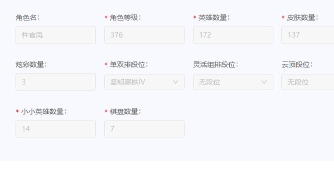 角色等级:379 角色名:杵官凤 排位赛:允许 单双排段位:英勇黄铜IV 灵活组排段位:- 英雄数量:172 皮肤数量:137 云顶段位:无段位 双人作战段位:无段位