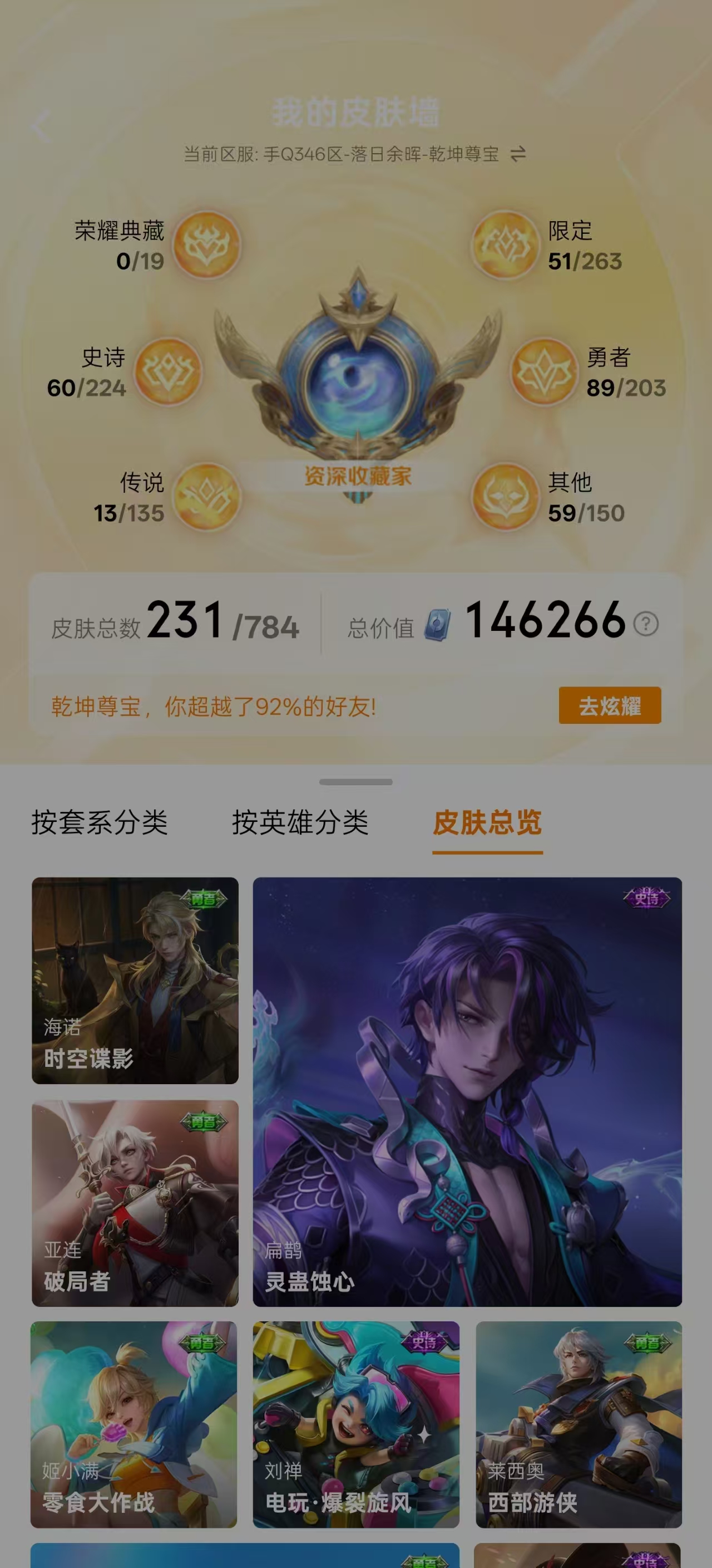 V8,230皮肤,孙悟空齐天大圣,孙行者 小乔山海 瑶山海,时之祈愿 曜山海 李信山海,一念神魔 后羿黄金射手座,...