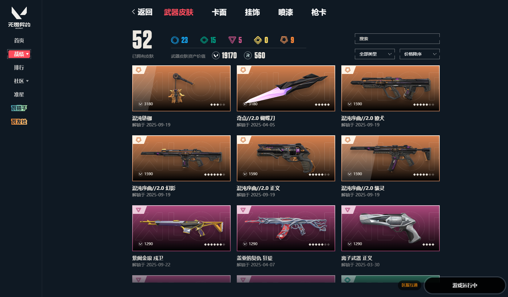 黄金精品带妹小号可排位禁炸鱼有超凡挂饰混沌序曲2.0套装奇点蝴蝶刀紫金戍卫盖亚狂徒离子狂徒离子正义堕天遗武冥狙