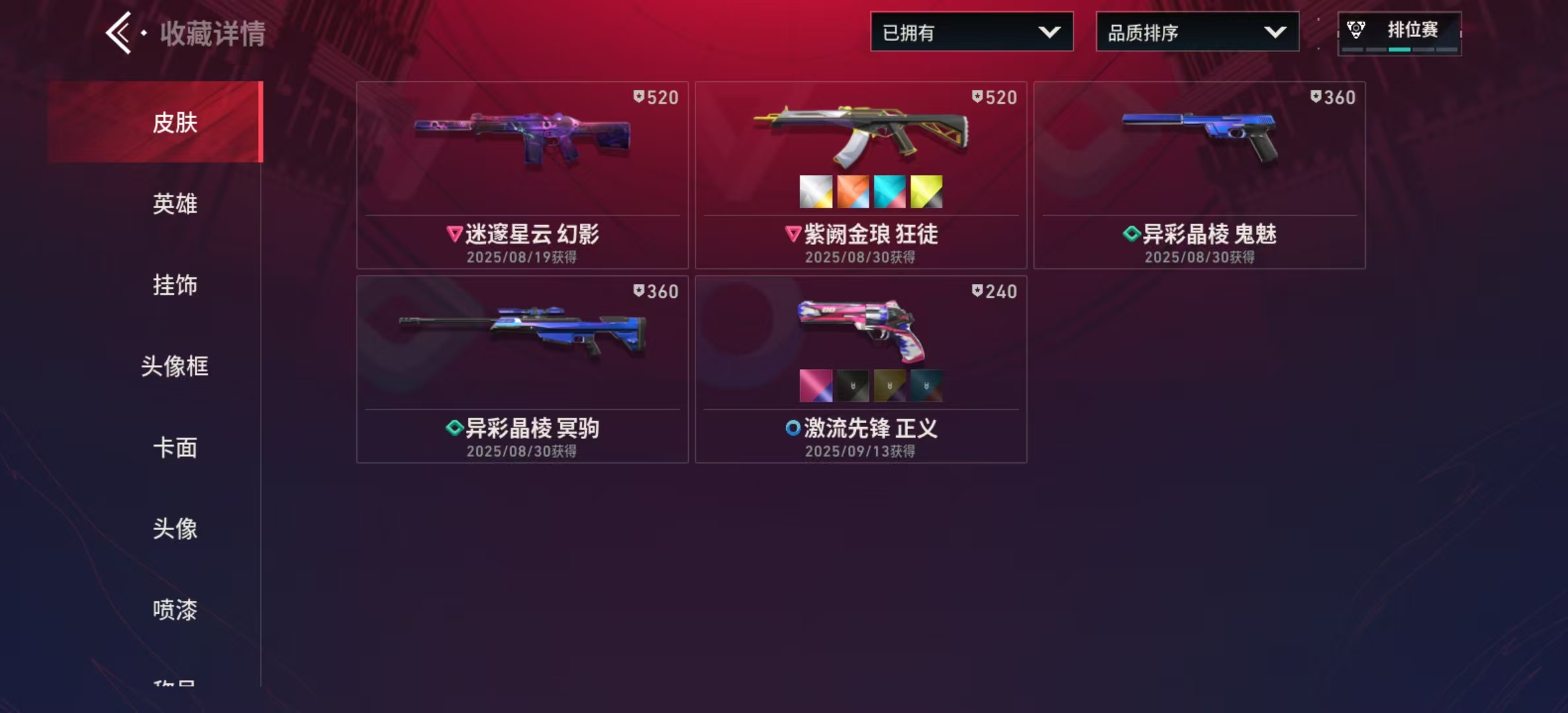 满级满皮紫阙金琅狂徒迷邃星云幻影17英雄 多卡面 异彩晶棱鬼魅 异彩晶棱冥驹 激流先锋正义-组3