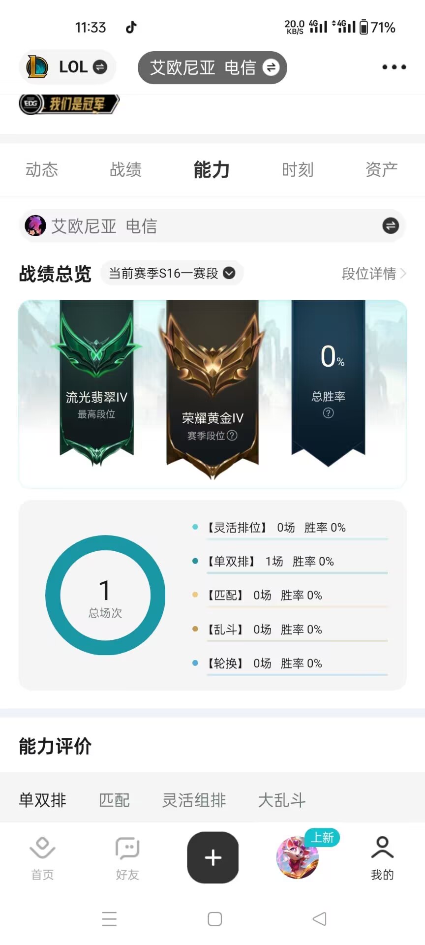 角色等级:353 角色名:金克斯是一种信仰 排位赛:允许 单双排段位:不屈白银III 灵活组排段位:- 英雄数量:172 皮肤数量:149 云顶段位:无段位 双人作战段位:无段位